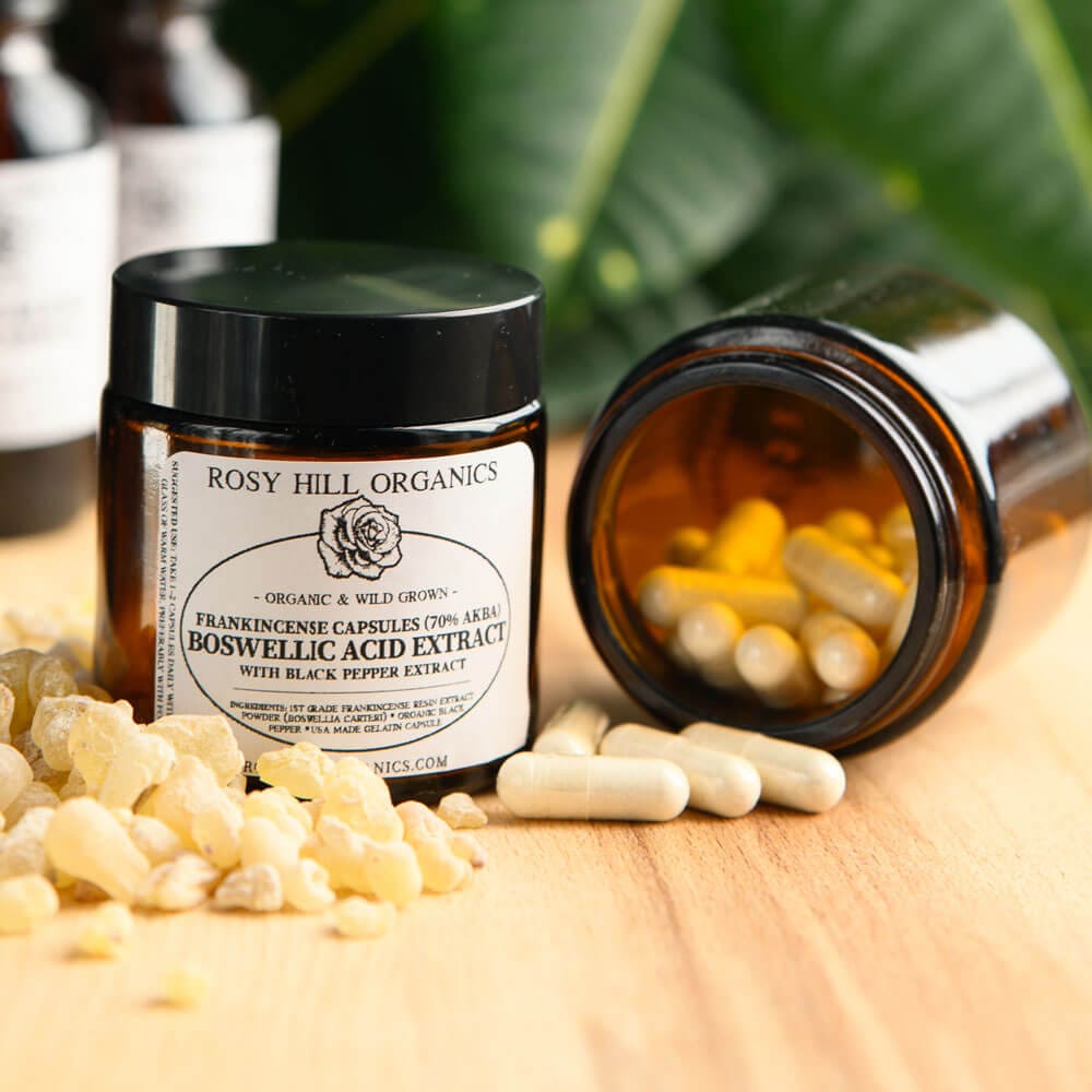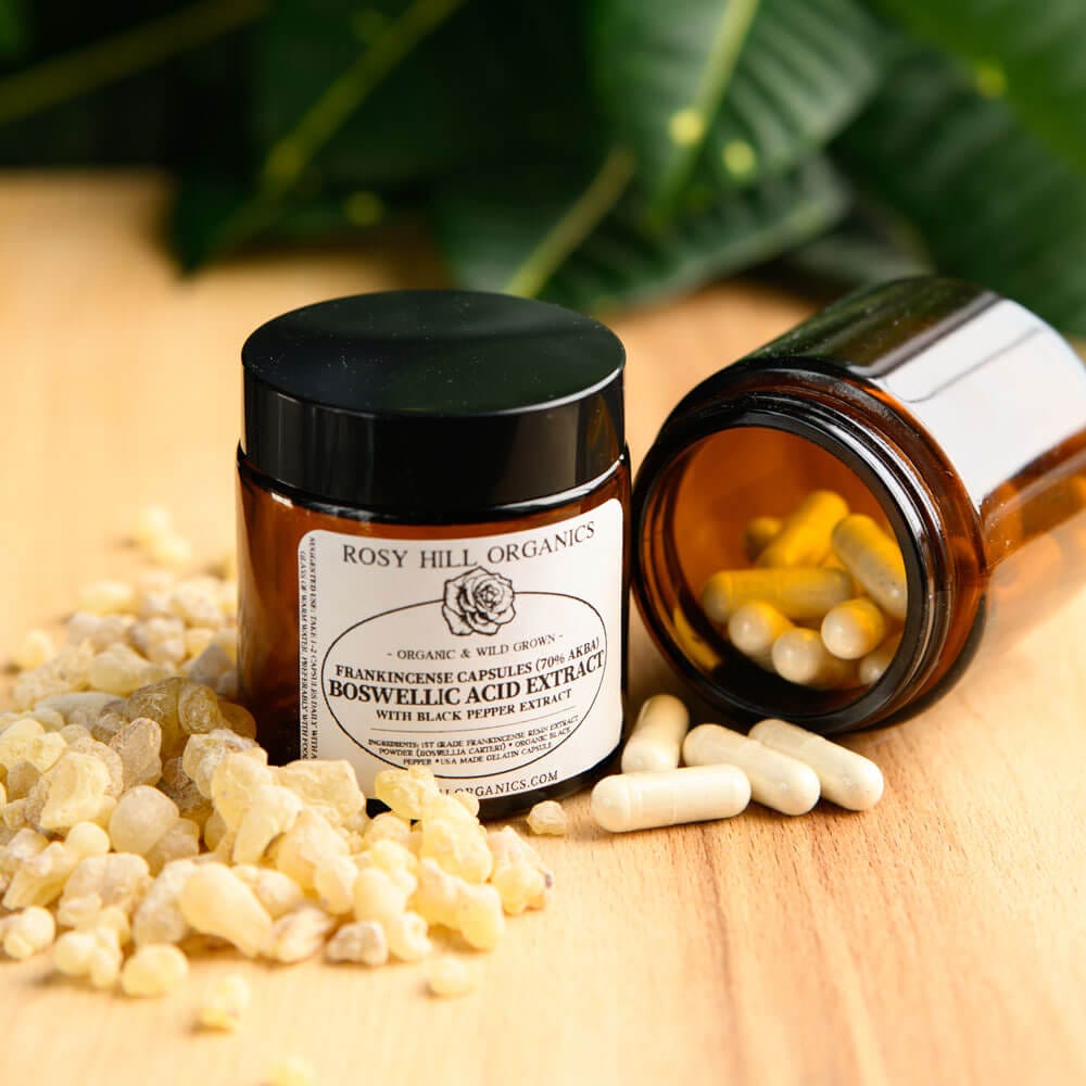 Our Frankincense Capsules – Boswellic Acid Extract Capsules let you harness the power of first-grade Boswellia Carteri resin, carefully extracted with organic ethanol (never hexane) to provide a clean, potent 70% Boswellic Acid extract, including the well-studied AKBA, renowned for its anti-inflammatory and anti-tumor potential.*