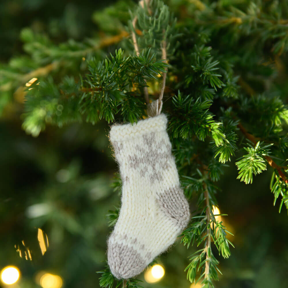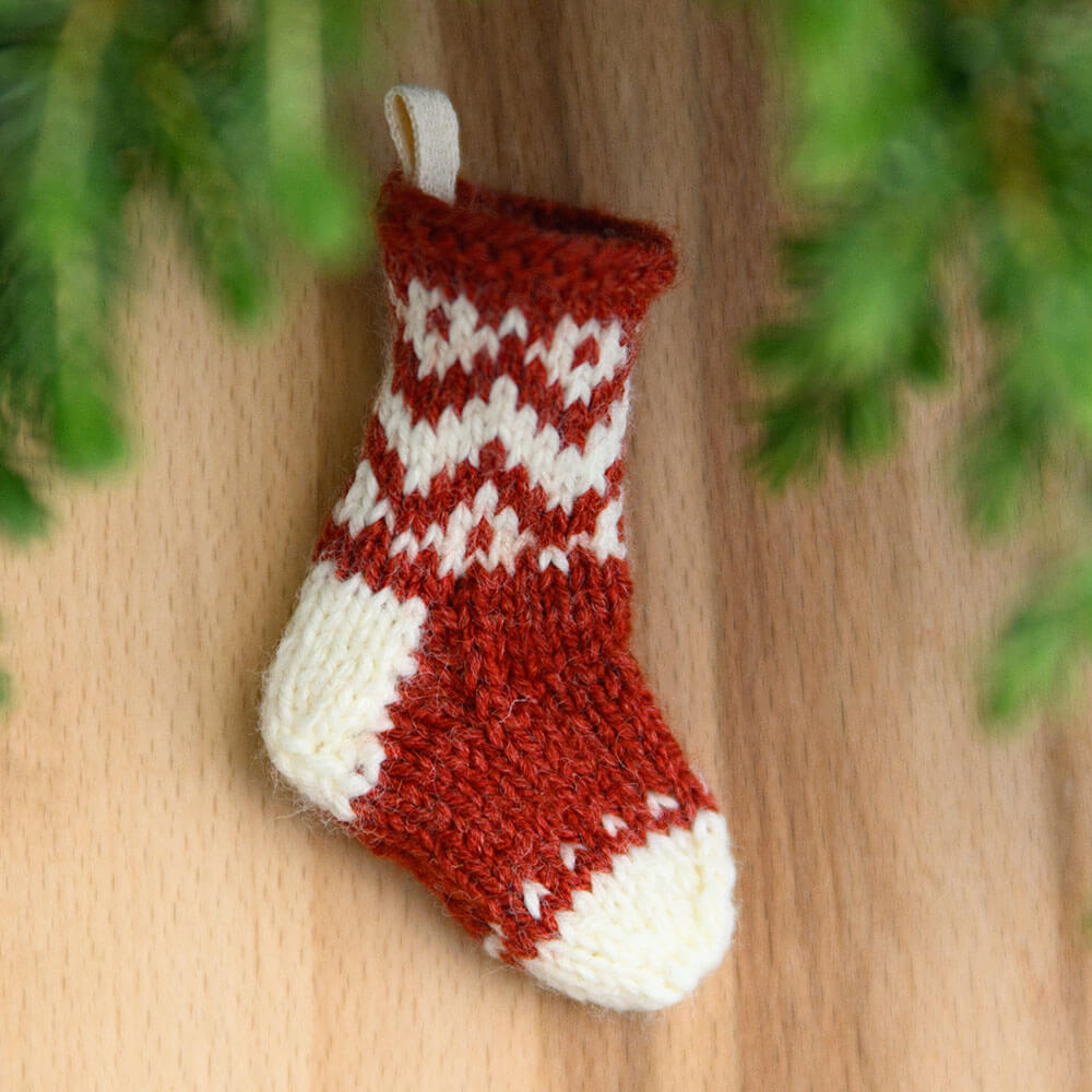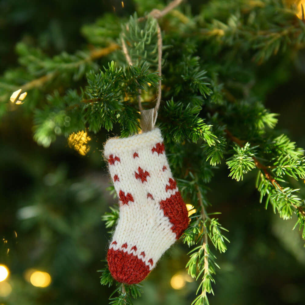 Our Knitted Stocking Ornament will add a touch of handmade charm to your holiday decor. Perfectly sized for trees, wreaths, or garlands, each ornament is lovingly hand-knitted, bringing warmth, texture, and festive cheer to your home. Ideal for gifting or as a cozy accent to your Christmas collection. Comes with a 100% cotton hook and jute hanger. Choose from several intricate designs. Thoughtfully handmade by Rachel at Rosy Hill Organics.